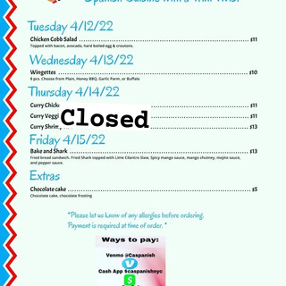 Roti day is closed!CaSpanish LLCApr 10, 20221 min readRoti day is closed. Continue to place your orders for the rest of the week. Menu will be closing soon. Thank you. #food #eat #menu #bronx