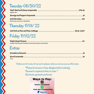 The menu is here people!!CaSpanish LLCAug 28, 20221 min readThis week's menu is here! Place your orders asap. #FOOD #eat #tasty #yummy #caspanish #caribbean #menu #hmm #love